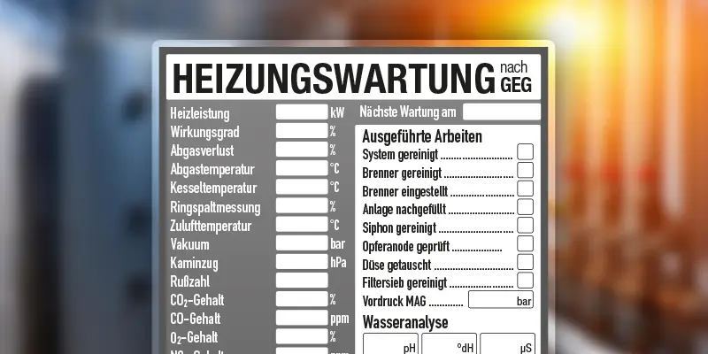 AUCH NEU: Wartungsaufkleber Heizungswartung GEG